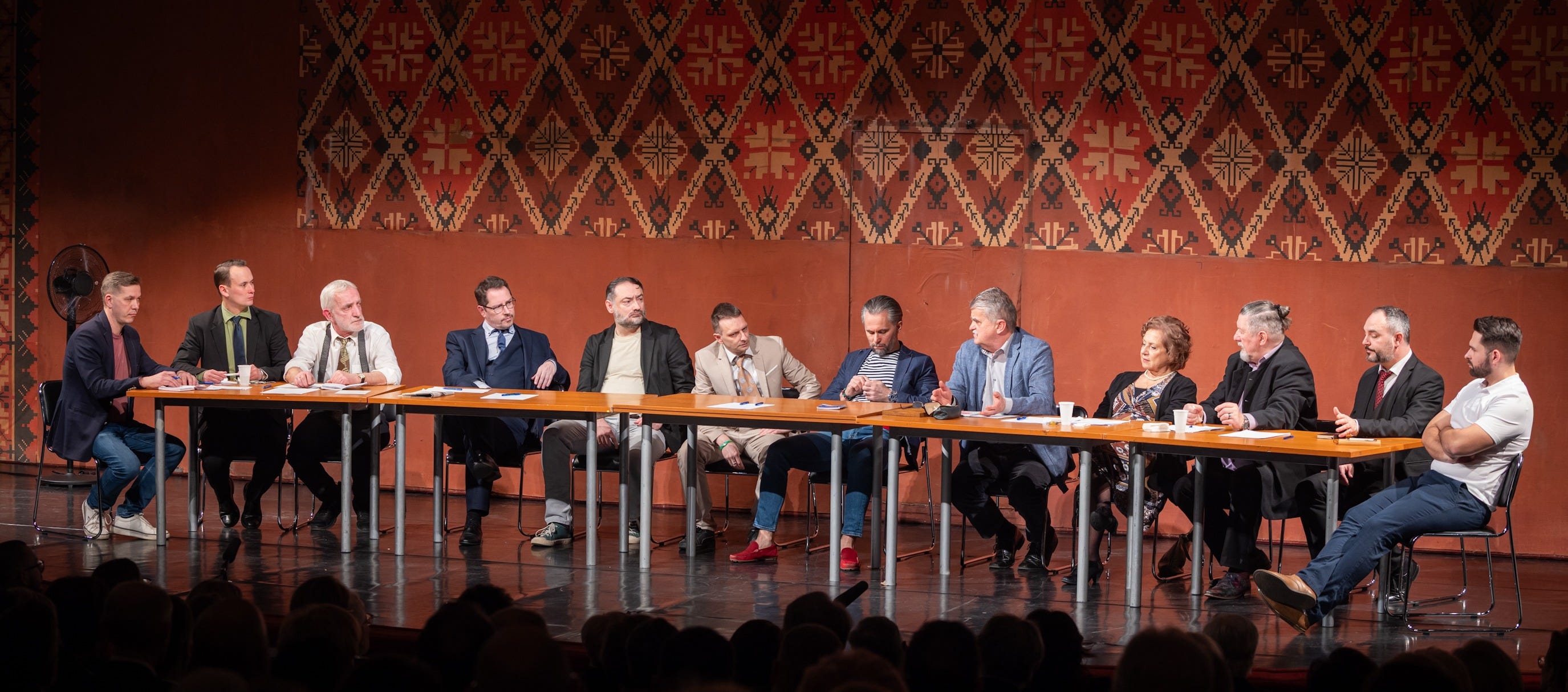 Maga az alkalom is különleges volt. Ugyanis a Szegedi Ügyvédi Kamara rendezvényén vettünk részt, amikor is a hazai ügyvédség kamarai szervezeti létének százötvenedik évfordulóját ünnepelték, miként sok más területi (megyei) kamarában is tették, országszerte. A szegediek nagy ötlete az volt, hogy a város híres Nemzeti Szinházában megtartott emlékülés befejeztével a színpadon egy valóságos színművet láthatott a jobbára szakmai, jogász közönség. Az előadás szereplői többségükben műkedvelő aktorok voltak: valamennyien szegedi gyakorló jogászok, főként ügyvédek. Külön elismerést érdemel magas színészi-színpadi teljesítményük.